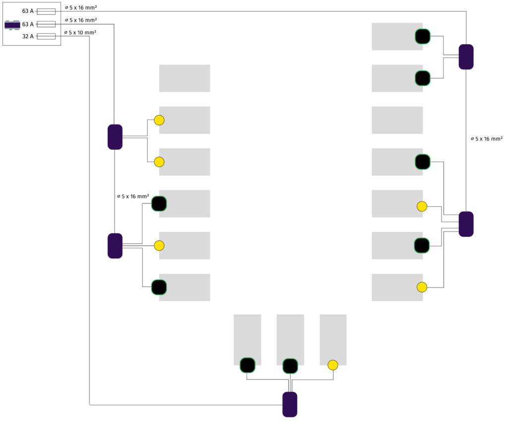 - Verkabelung ab LADEmini Cabinet sternförmig