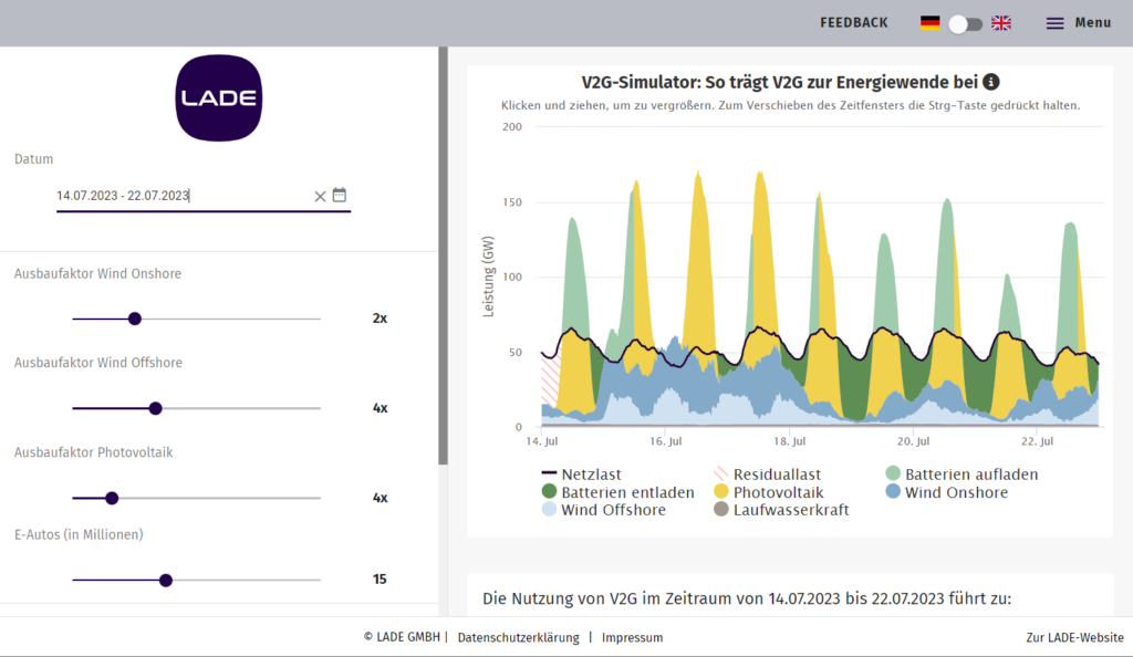 Bi-directional charging and vehicle-to-grid (V2G) make e-cars a low-cost store for green energy. Discover with just a few clicks how much potential this technology offers.
